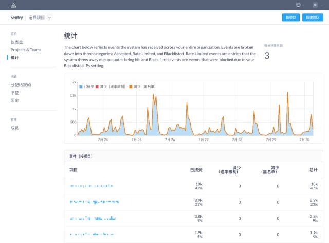 Sentry 是一个错误记录和聚合的平台,只要看看它漂亮的界面就会喜欢上它:
