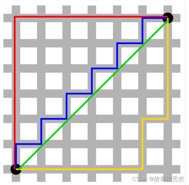 定义:在n维空间中两个点之间的真实距离。在二维和三维空间中的欧氏距离就是两点之间的直线距离