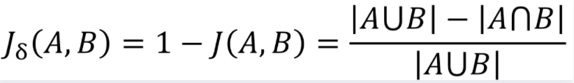 定义:与杰卡德相似系数相反的概念是杰卡德距离(Jaccard distance)。Jaccard(杰卡德)距离是用两个集合中不同元素所占所有元素的比例来衡量两个集合(样本)的区分度。