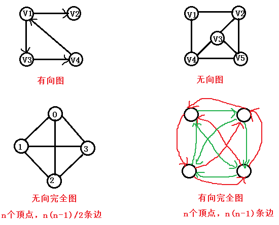 4) 稀疏图: 有很少边或弧的图(e<nlogn)