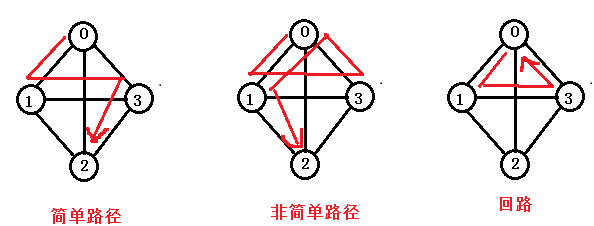 5) 简单回路(简单环): 除路径起点和终点相同外,其余顶点均不相同的路径