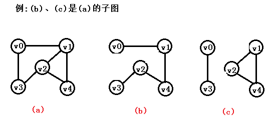 8) 子图: 设有两个图G=(V,{E})、G1=(V1,{E1}),若则称G1是G的子图