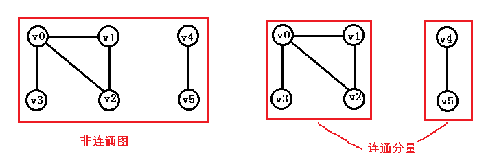 2) 极大连通子图:该子图是G的连通子图,将G的任何不在该子图中的顶点加入,子图不再连通