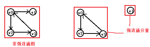 4) 极大强连通子图:该子图是G的强连通子图,将G的任何不在该子图中的顶点加入,子图不再强连通