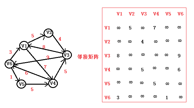 3) 初始化邻接矩阵,使每个权值初始化为极大值