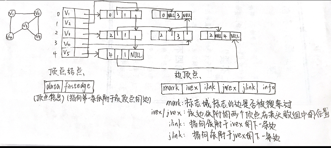 ArcNode *firstarc; //指向第一条依附该顶点的边的指针