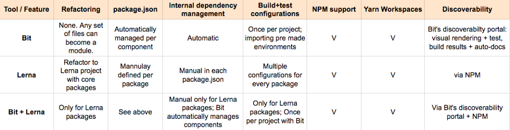 - 使用Lerna处理库中的3-4个较大的程序包,而Bit将处理数十个组件。