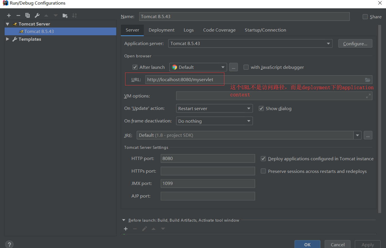 启动后项目访问路径为deployment下的application context而不是部署配置界面的server下的URL