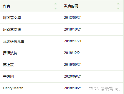 根据作者名字进行排序: