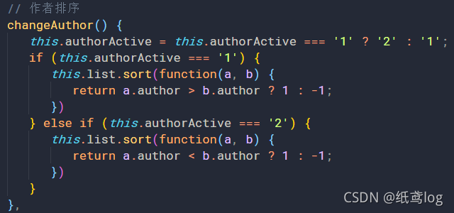 如果等于 1 的情况下,我想做一个升序的操作,判断作者字段,a > b 返回一个 1 , 反之 -1;