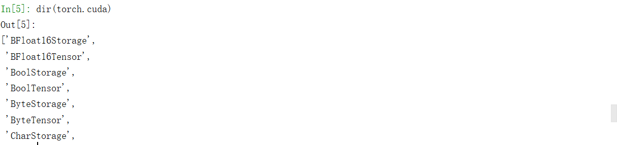 再输入:dir(torch.cuda),查看cuda中的分隔区