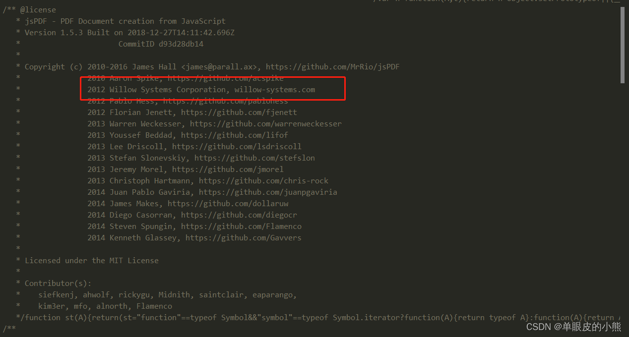 项目中使用了 jspdf 这个插件,webpack打包后注释里存在这样的