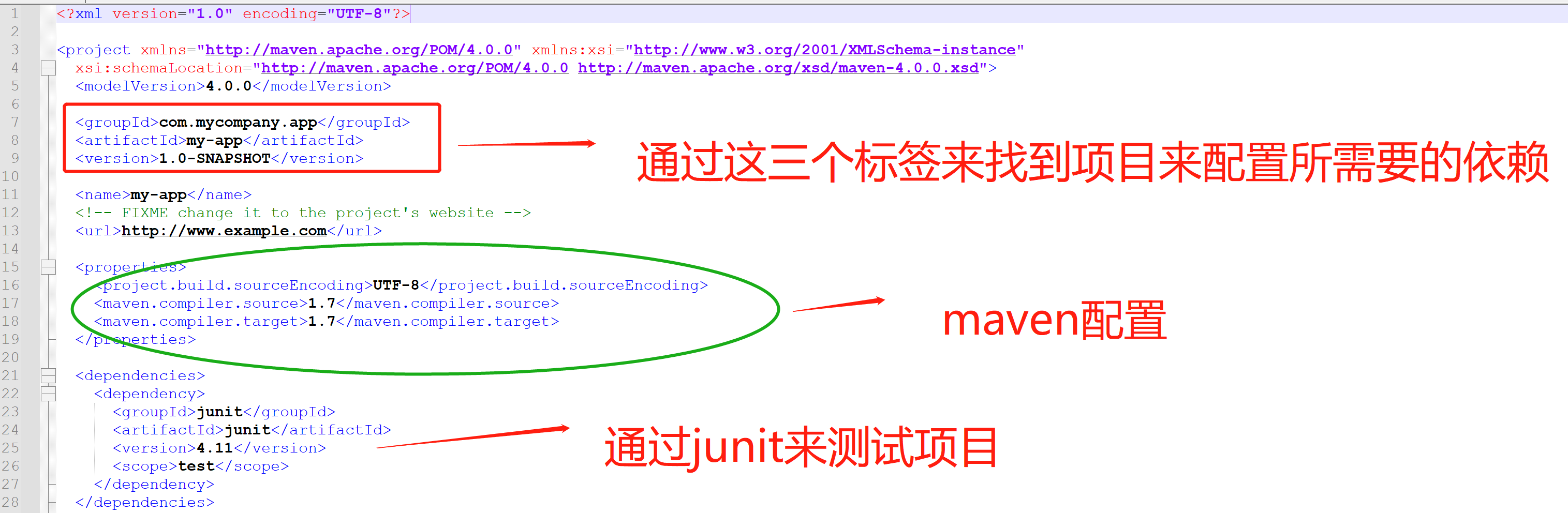 groupId类似于Java的包名,通常是公司或组织名称,artifactId类似于Java的类名,通常是项目名称,再加上version,一个Maven工程就是由groupId,artifactId和version作为唯一标识。我们在引用其他第三方库的时候,也是通过这3个变量确定。
