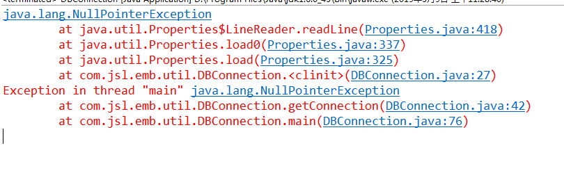 引入properties文件,报NullPointerException异常,java.util.Properties$LineReader.readLine(Properties.java:418)