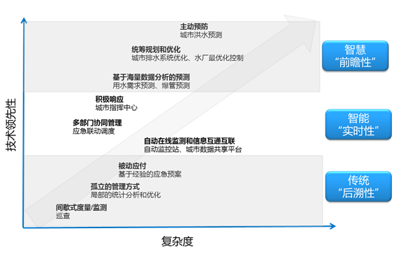 预警指对于危机的风险管理和事前警告,例如暴雨洪水预警。预测则是强调事件发生后的影响估计和快速应对。以水污染为例,一旦出现污染事件,城市应急部门通过实时数据,判定污染地点、污染物质、扩散速度,分析随着时间推移污水会在对下游产生何种程度的影响,采取污染处理紧急方案,协调市政部门或商业、工业、农业部门,在计划时间内解决问题,协调污水处理公司实施恢复性救助和指导受影响地区和工、商、农业采用正确措置应对问题、恢复生产。