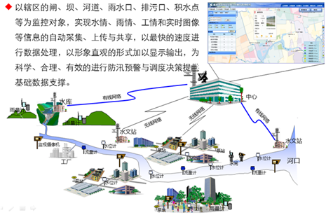 通过数采仪、无线网络、水质水压表等在线监测设备实时感知流域整体分布、水流、水质、自然降水、人工蓄水、生活用水、工业用水、农业用水、污水排放等信息,形成“城市水务物联网”,记录在案,全面监控,然后共享给市政、企事业各方机构和公众。