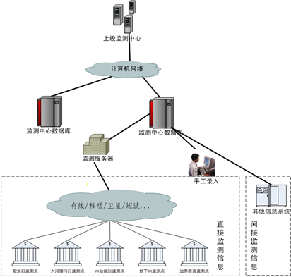 信息采集包括供取水监测、地表水监测、地下水监测、水功能区监测、排污口监测、行政边界断面监测、河道水情、气象雨情等监测项目。所有原始数据均存入水资源综合数据库,为水资源统一管理、分析、评价、预报和决策提供信息依据。