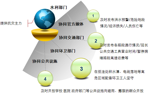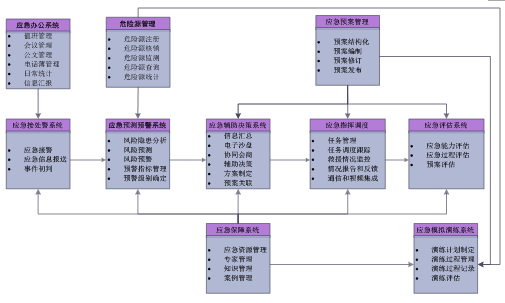 防汛应急指挥系统涵盖防汛应急管理指挥全过程的信息化需求,以软件系统建设为核心,以地理信息系统和电子政务协同服务平台为支撑,基于空间电子地图实现可视化的危险源管理、应急资源保障、预案管理、应急接处警、预警监测、指挥调度和协同会商等,将防汛应急管理全过程纳入图上作业,目的是打造全流程可视化的防汛应急管理和指挥协同平台,为政府防汛指挥工作提供可视化辅助决策依据。