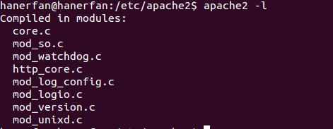 不同的平台和环境往往需要不同的特性,或以不同的方式来实现效率的最大化。Apache通过模块化的设计适应各种环境。通过在编译或运行时指定哪些模块加载到服务器中,来选择服务器的特性。使用apache2 -l输出编译到服务器中的模块列表(不包括使用LoadModule配置项指定的动态加载的模块):