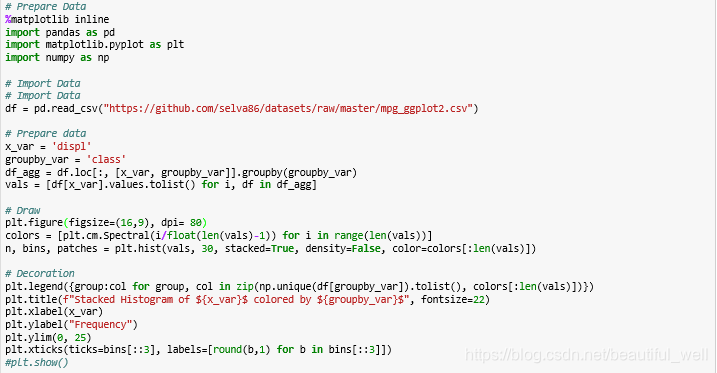 2、直方图显示给定变量的频率分布。下面的表示基于分类变量对频率条进行分组,从而更好地了解连续变量和串联变量。