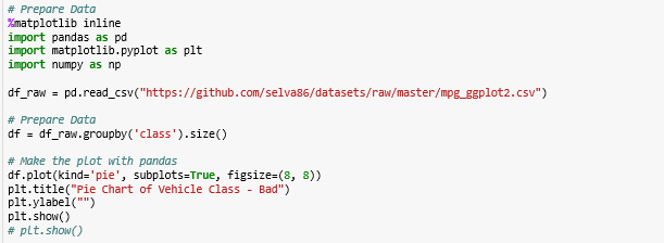 饼图是显示群组成的经典方式。然而,现在通常不建议使用它,因为馅饼部分的面积有时会变得误导。因此,如果您要使用饼图,强烈建议明确记下饼图每个部分的百分比或数字。