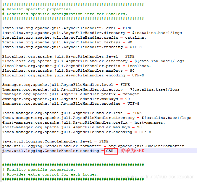 2.修改最后一个java.util.logging.ConsoleHandler.encoding = GBK