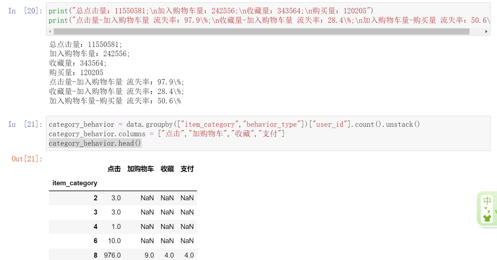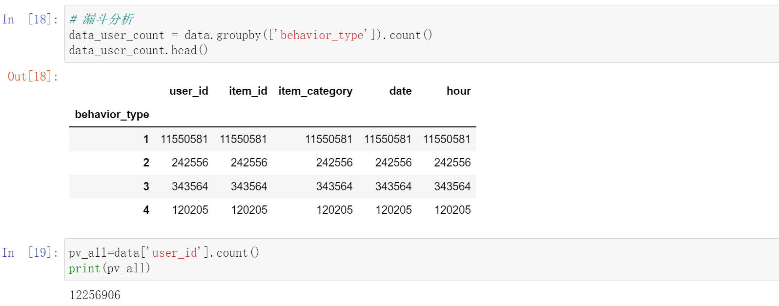 以淘宝APP2014年11月18日-12月18日近1200万+条数据,近1万用户为数据集,探索用户的行为模式。具体指标包括日PV、uv分析,付费率分析、复购情况分析、漏斗流失分析和用户价值RFM分析。