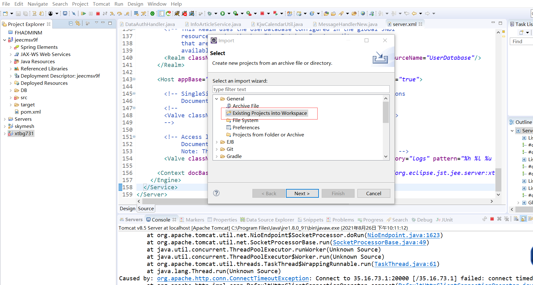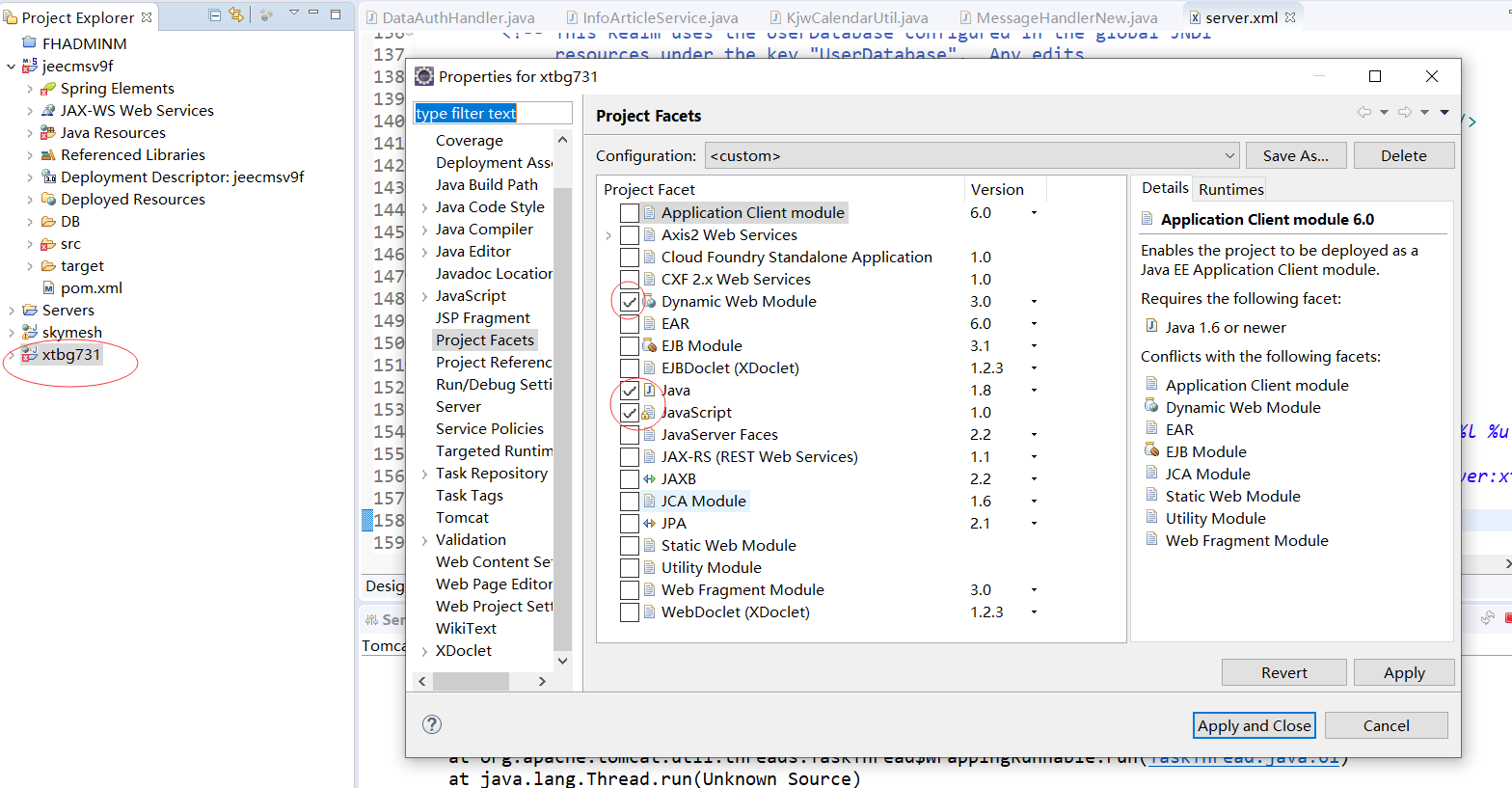 eclipse中tomcat无法识别JavaEE项目协同办公改造成常规JavaEE项目使用eclipse导入项目右键项目项目properties>project facets 选择如下三项(就能加到tomcat里面,此时加载项目编译的路径还不对)修改项目setting(修改tomcat读取编译后的文件目录)版权声明:本文为qq_40016949原创文章,遵循CC 4.0 BY-SA版权协议,转载请附上原文出处链接和本声明。原文链接:https://blog.csdn.net/qq_40016949/article/details/119942193
