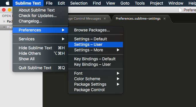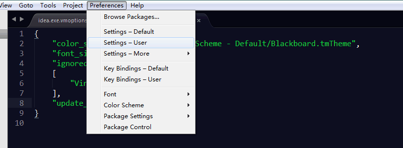 Sublime Text —— Preferences —— Settings — User