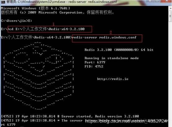 4.然后输入redis-server redis.windows.conf 命令