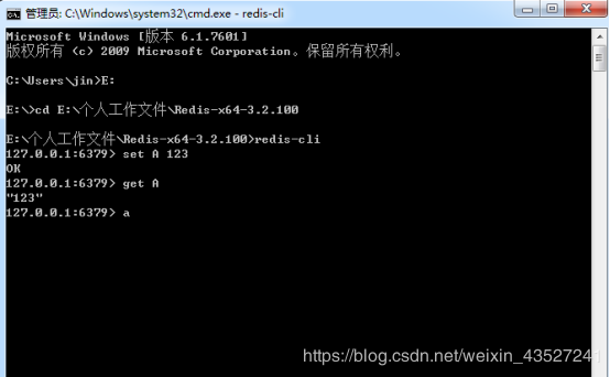 测试redis,通过cd到我们解压的目录,输入redis-cli打开客户端,输入指令通过Set get指令查看是否成功