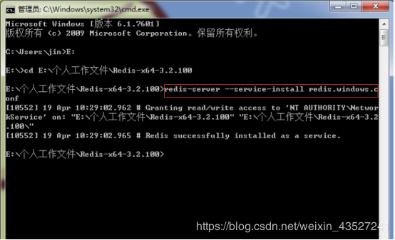 然后输入指令redis-server --service-install redis.windows.conf