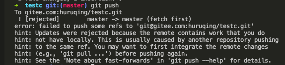 原因: 在你提交之前, 已经有人先于你提交了, 你要先执行git pull把对方的代码更新下来, 再去执行git push。