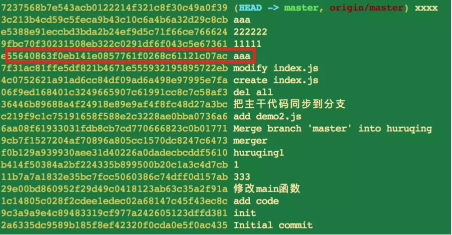 - 如果我们要回退到aaa这次操作提交上来,我们只需要将id复制一下,然后执行下面命令即可