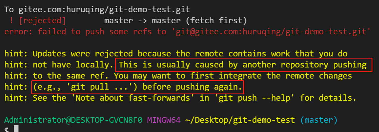 意思是被拒绝了,要先执行 git pull 命令