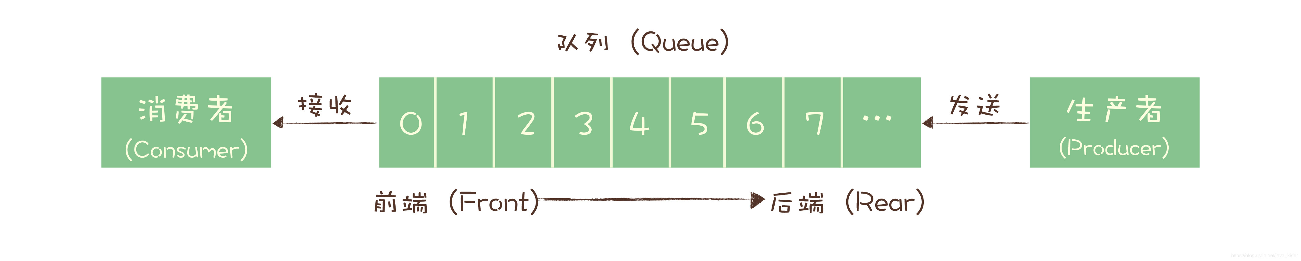 最初的消息队列,就是一个严格意义上的队列。在计算机领域,“队列(Queue)”是一种数据结构,有完整而严格的定义。在维基百科中,队列的定义是这样的: