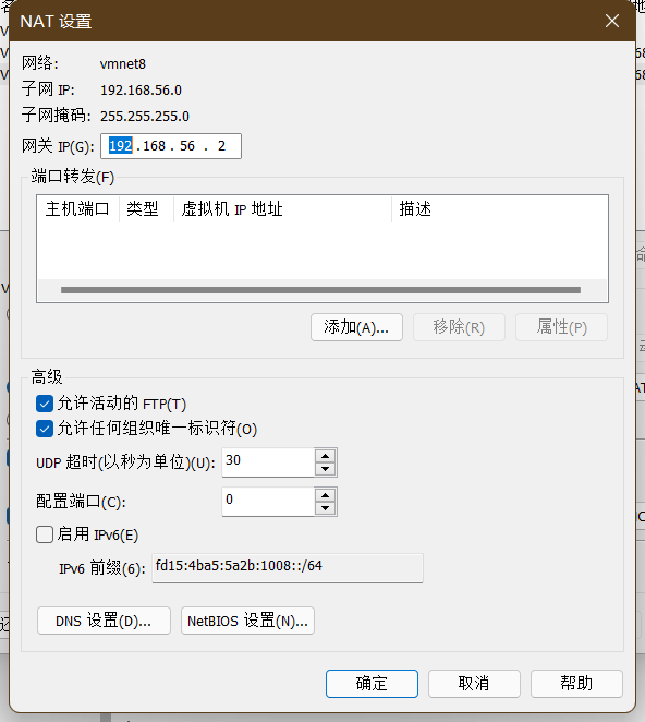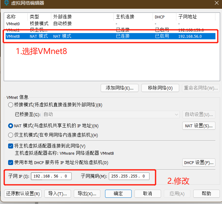 - VMWare中点击 编辑->虚拟网络编辑器设置