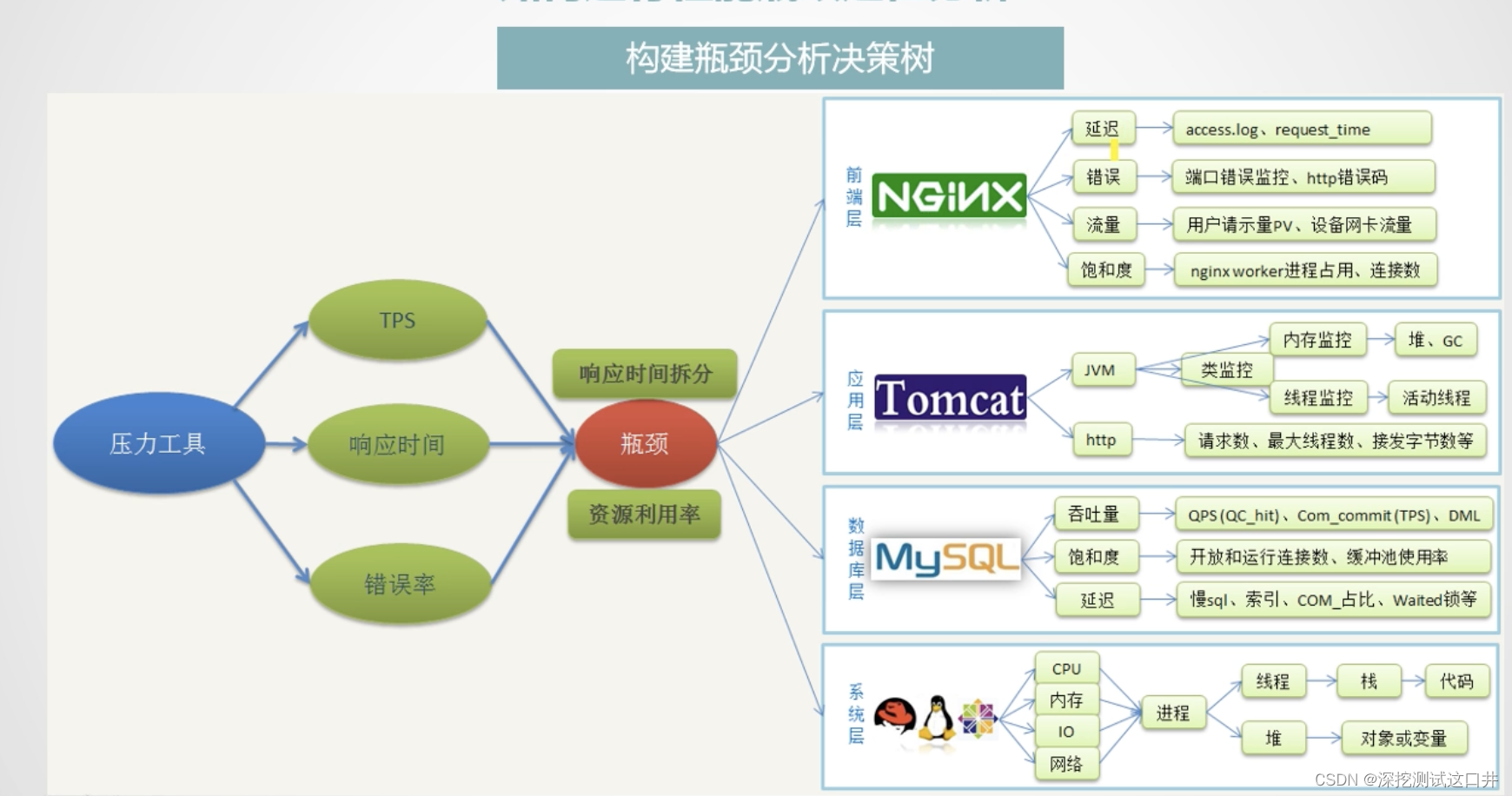 链路监控(APM监控)—链路追踪,埋点各个接口的函数或类的链接关系,请求链路。目的就是找出拿个环节消耗时间最长,那么性能瓶颈定位分析就指向哪个环节。