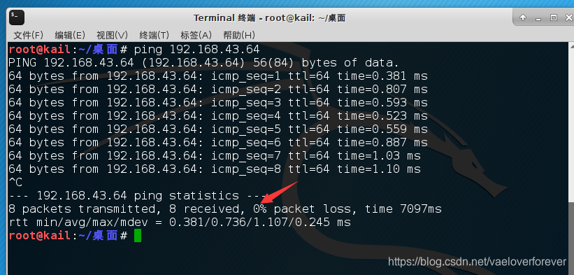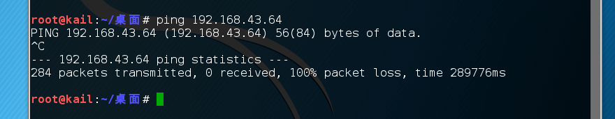 Step 7.在虚拟机中打开终端,利用arpspoof工具,对物理机发起ARP断网攻击。
