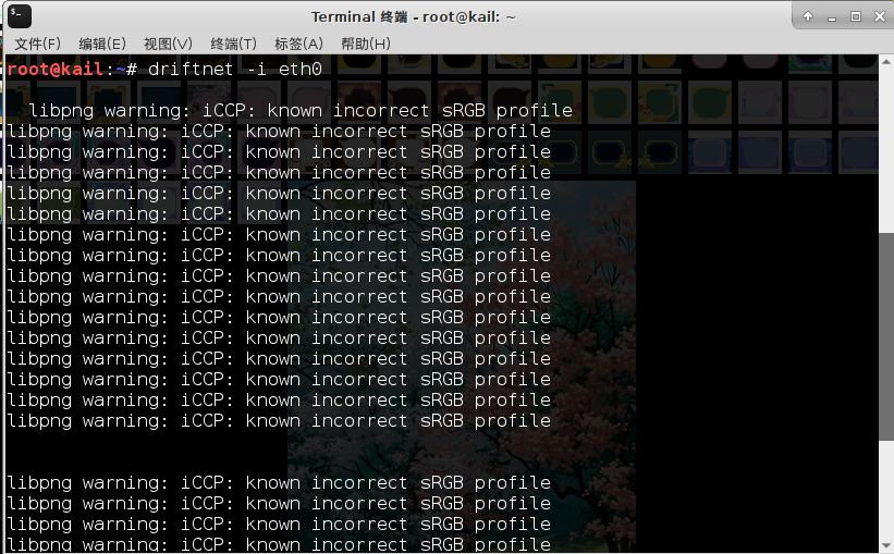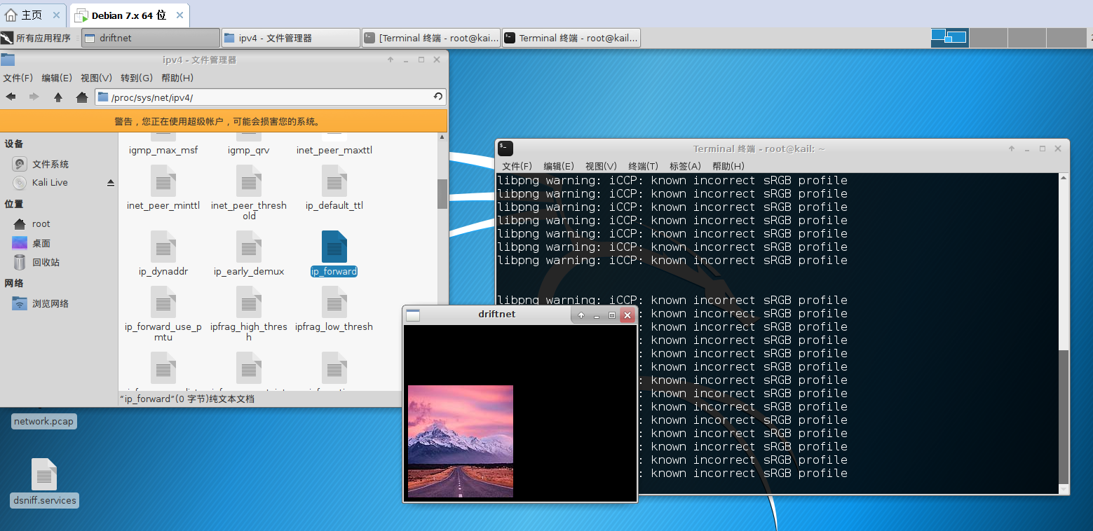 在虚拟机中的driftnet窗口中,依旧可以看到这张图片。