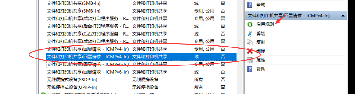 果然,win10默认关闭的ICMP的回显请求,启用该规则之后,两台主机就可以成功ping通了。