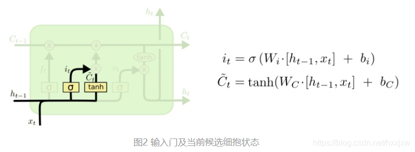如图所示,其中相较于传统RNN单元,LSTM不仅有hidden-state h,还有细胞状态cell-state C. 而其中