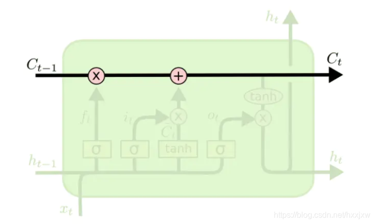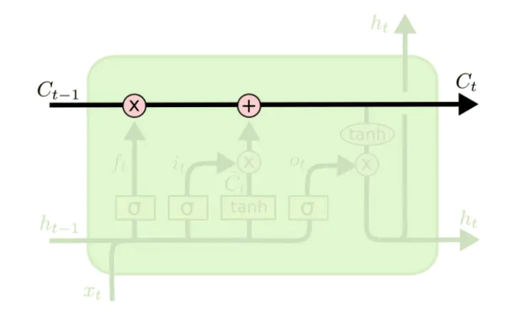 LSTM的核心是细胞状态,表示细胞状态的这条线水平的穿过图的顶部。