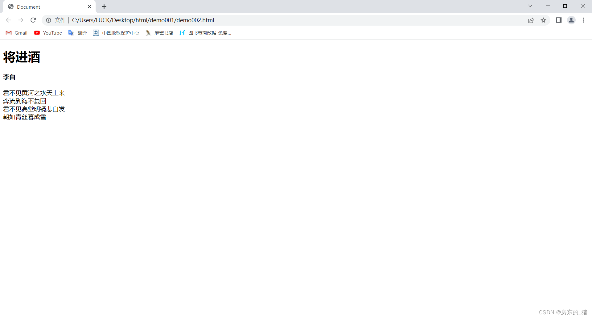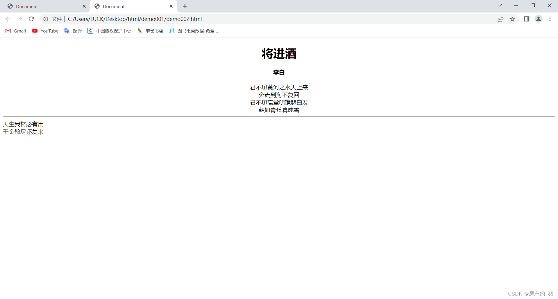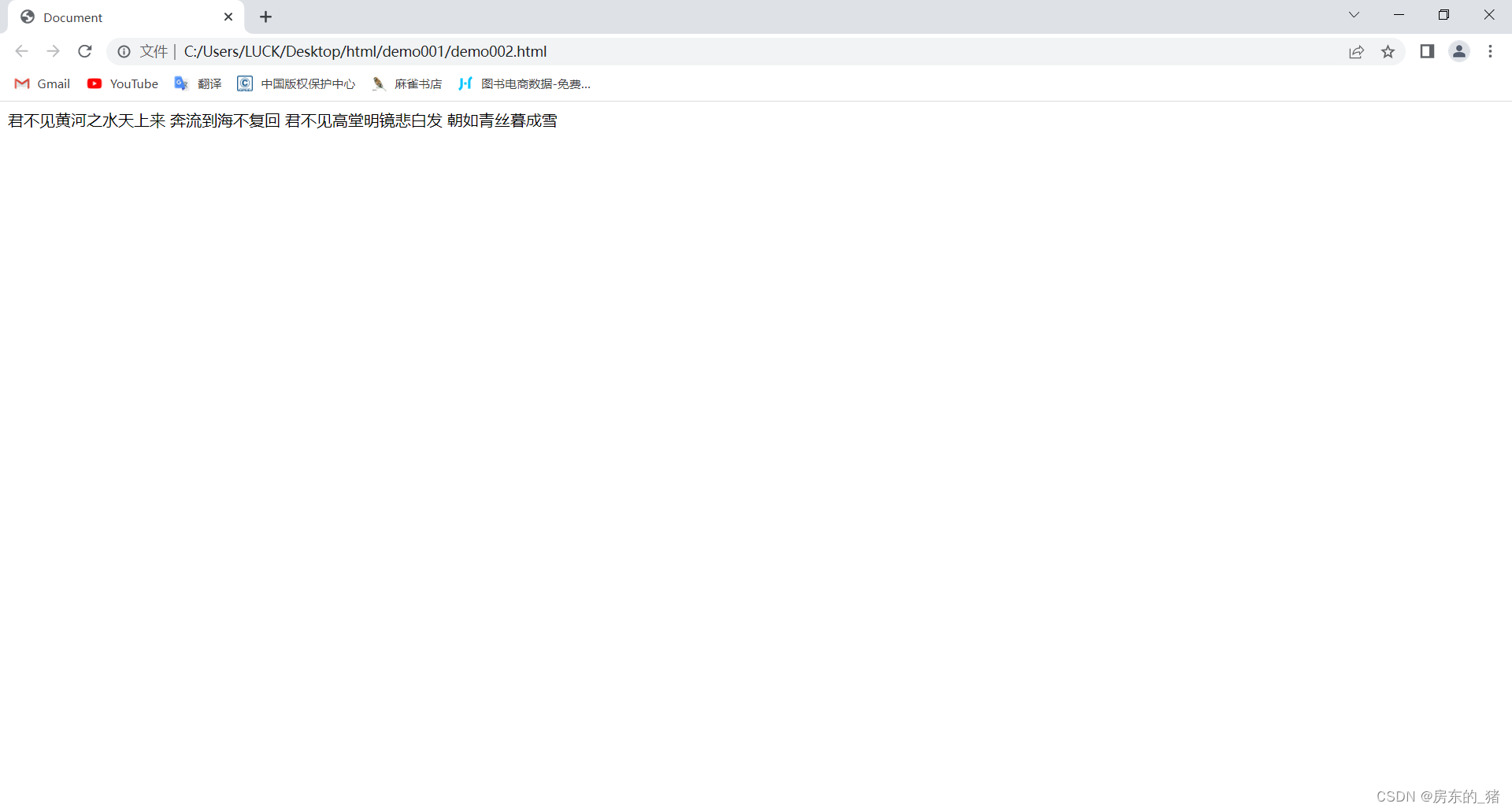 ③<p>段落的文本内容</p> 标识一个段落(段落与段落之间有间距)