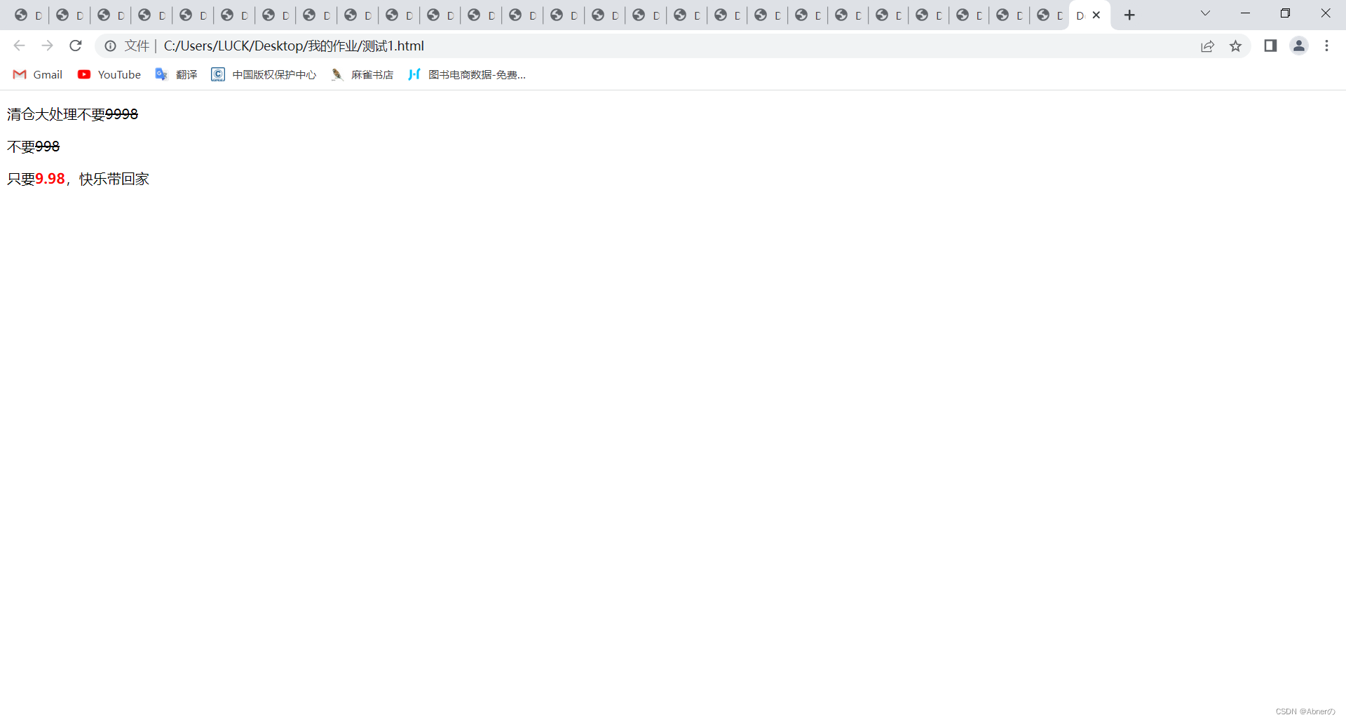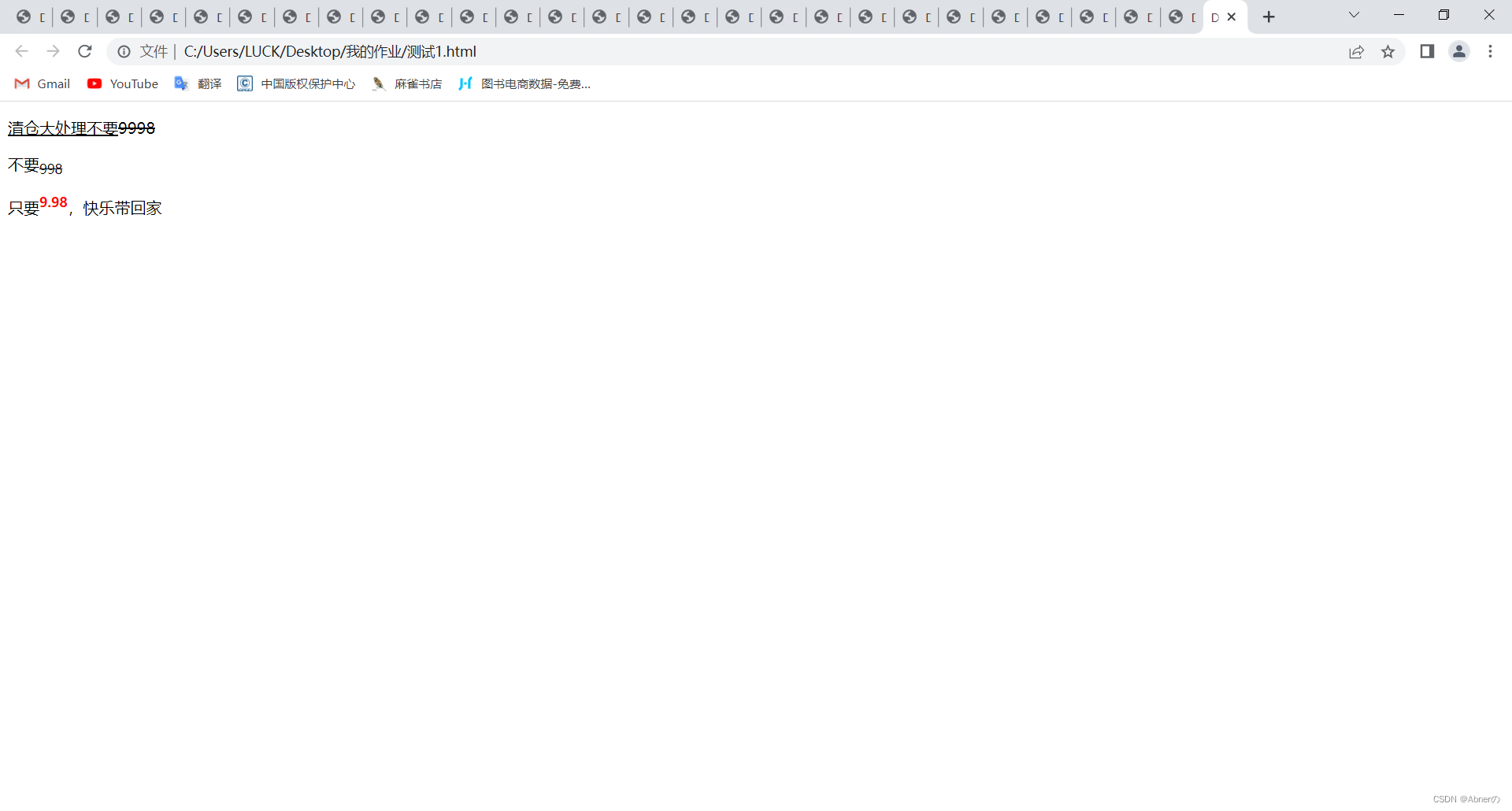 5、删除线标记(有两个标记,推荐使用<del></del>)