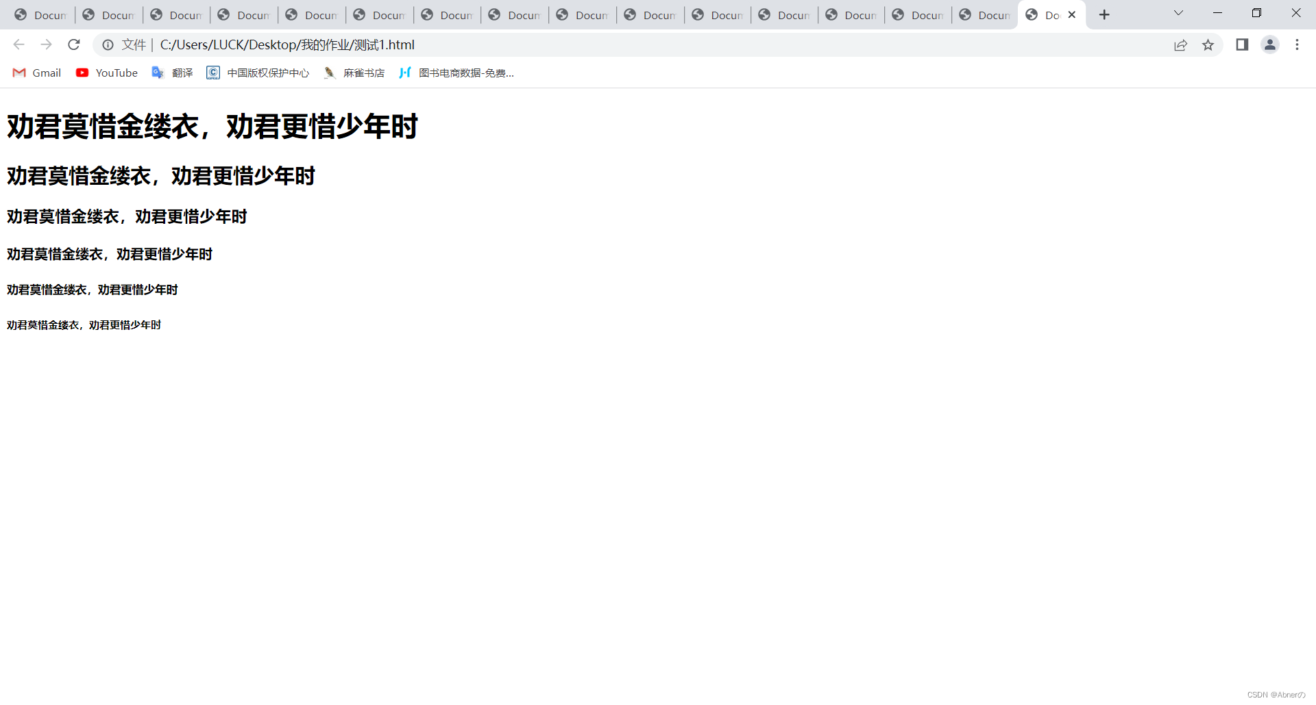 1、标题标签,一共有六个标题标签。(h1-h6) 块元素
