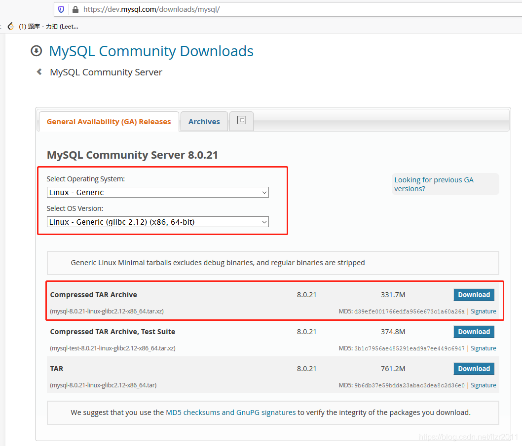 可以通过以下地址直接下载:https://cdn.mysql.com//Downloads/MySQL-8.0/mysql-8.0.21-linux-glibc2.12-x86_64.tar.xz