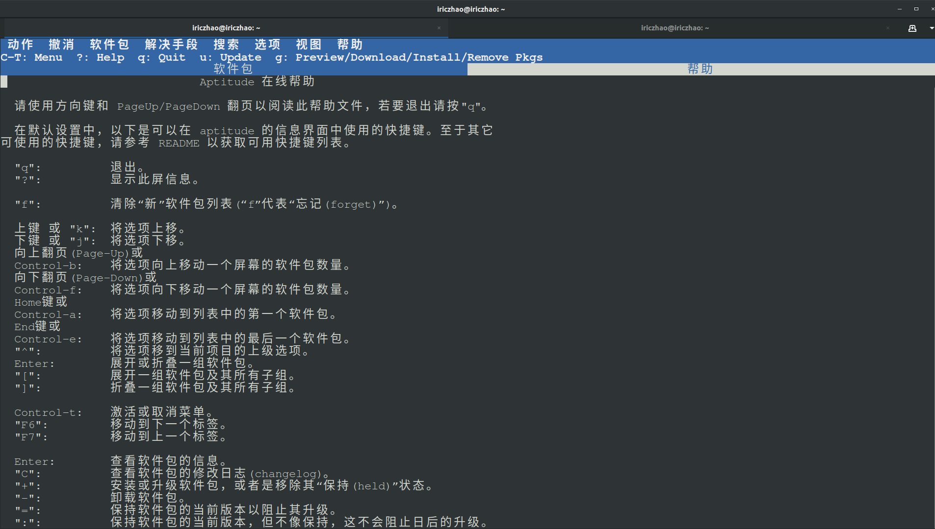 1、按下键盘上?号键查看关于aptitude的帮助提示。