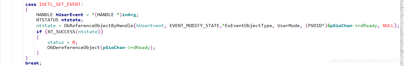 KeSetEvent(pChan->rdReady, IO_NO_INCREMENT, FALSE); //触发事件
