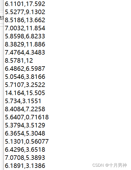 前一列表示人口,后一列表示利润故变量只有人口,现要对该数据集进行线性拟合,并用图形展示